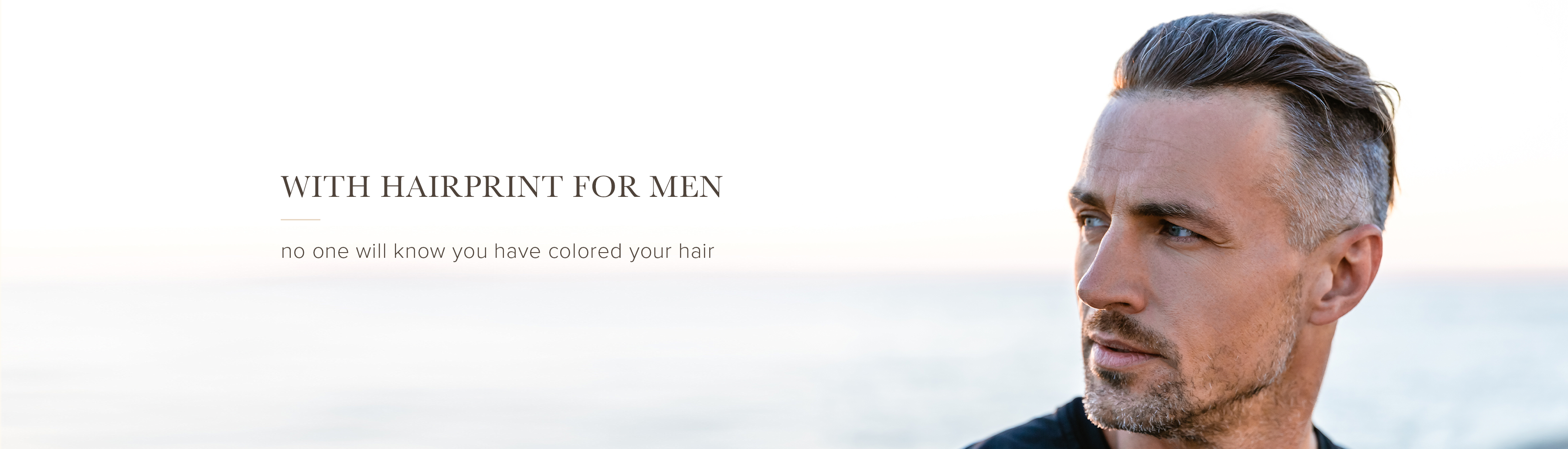 Hairprint is a patented scientific breakthrough that restores gray hair to its true color. It is not a dye. It replenishes the natural pigment (eumelanin) found in brown and black hair that has turned gray. Hairprint is also a true protein treatment that will add body, strength, texture, and sheen while reducing frizz, and discoloration. Our simple, hypoallergenic, and odor-free formula produces color so natural, it defies detection. The treatment can be applied at home in about 75-90 minutes.